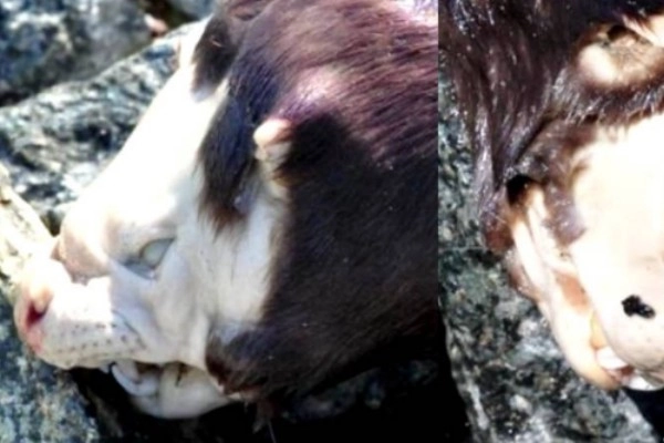 A woman was walking her dog on a Welsh beach when she stumbled upon the "Tambi Monster" corpse. It looked like a weird hybrid of a horse, a bear, and a pig—total nightmare material!